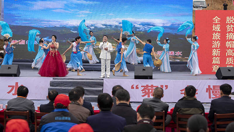? ? 開幕式由中共槎水鎮(zhèn)委員會、槎水鎮(zhèn)人民政府,潛山市文化委、市市監(jiān)局、市扶貧辦、市旅發(fā)委主辦。《又是一年菊花香》、《美麗槎水 我的故鄉(xiāng)》、《雛菊花》、《 物華天寶 》等歌、舞、情景劇充分展現(xiàn)槎水鄉(xiāng)村生活風(fēng)情、自然與文化魅力、山區(qū)群眾奮斗在新時代以及經(jīng)濟(jì)發(fā)展成就。一個又一個接地氣的節(jié)目,讓觀眾們看了十分過癮,掌聲不斷。