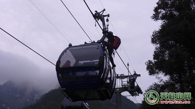 ?此次救援演練,由2名工作人員模擬游客被困在索道吊廂中。接到故障報(bào)告后,景區(qū)應(yīng)急救援指揮部迅速下達(dá)指令,救援隊(duì)、醫(yī)療急救等隊(duì)伍隨即攜帶裝備趕赴現(xiàn)場。2名主救人員爬上索道支架,將救援行走小車安裝到運(yùn)載索上,然后空中滑行至被困纜車,協(xié)助被困游客系好救援安全帶利用緩降繩到達(dá)地面。游客降落后,地面的醫(yī)護(hù)人員立即對游客進(jìn)行救護(hù)、心理安撫等。整個(gè)救援過程用時(shí)22分50秒。