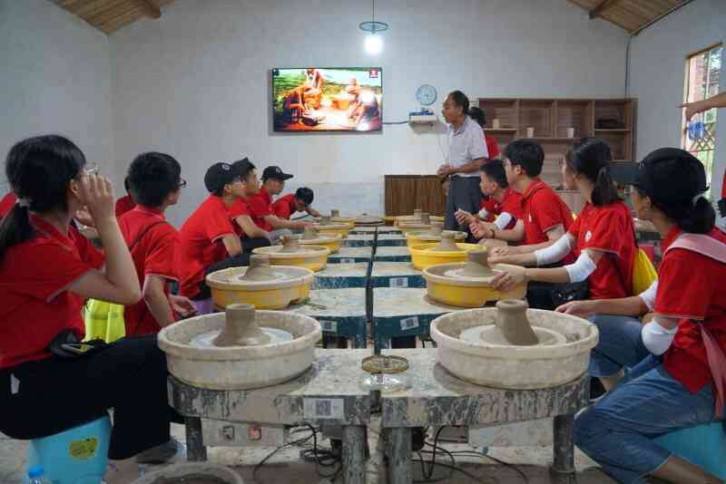 潛山市痘姆鄉(xiāng)素有“千年陶瓷之鄉(xiāng)”的美稱,陶器手工技藝距今已有6000多年的歷史,堪稱制陶史上的活化石。走進痘姆古陶,首先映入眼簾的是建于清代的龍窯,每個入火口都堆積了許多柴火,近處可感受到火的炙熱溫度。走進屋內,可見眾多精美的古陶制品擺放在木架上,富有文藝復古氣息。營員們在陶藝師傅的指導下,親自體驗了制胚過程,看到自己親身制作的泥坯作品展示在眼前時,無不興奮激動,這既能感受到傳統(tǒng)文化的藝術魅力,也能激發(fā)他們爭做非物質文化遺產繼承人的決心。