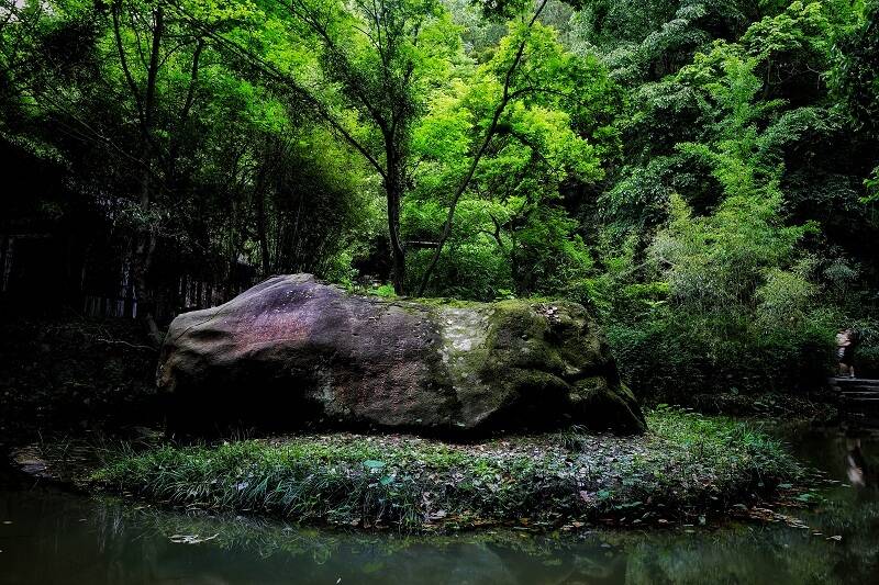 古時(shí),王安石在這里坐石而忘了憂愁,黃庭堅(jiān)甚至將此視為安身立命之所。蘇軾、朱熹、李公麟等名家或愜意夜游,或吟詩歌賦,留下了400余方縱肆的書法石刻。面對(duì)先賢的摩崖石刻,往來喧囂之心會(huì)變得安靜和謙卑。這里環(huán)境幽靜、植被茂密、溪水潺潺,是天然的“氧吧”,更是避暑消夏的好“涼”方。