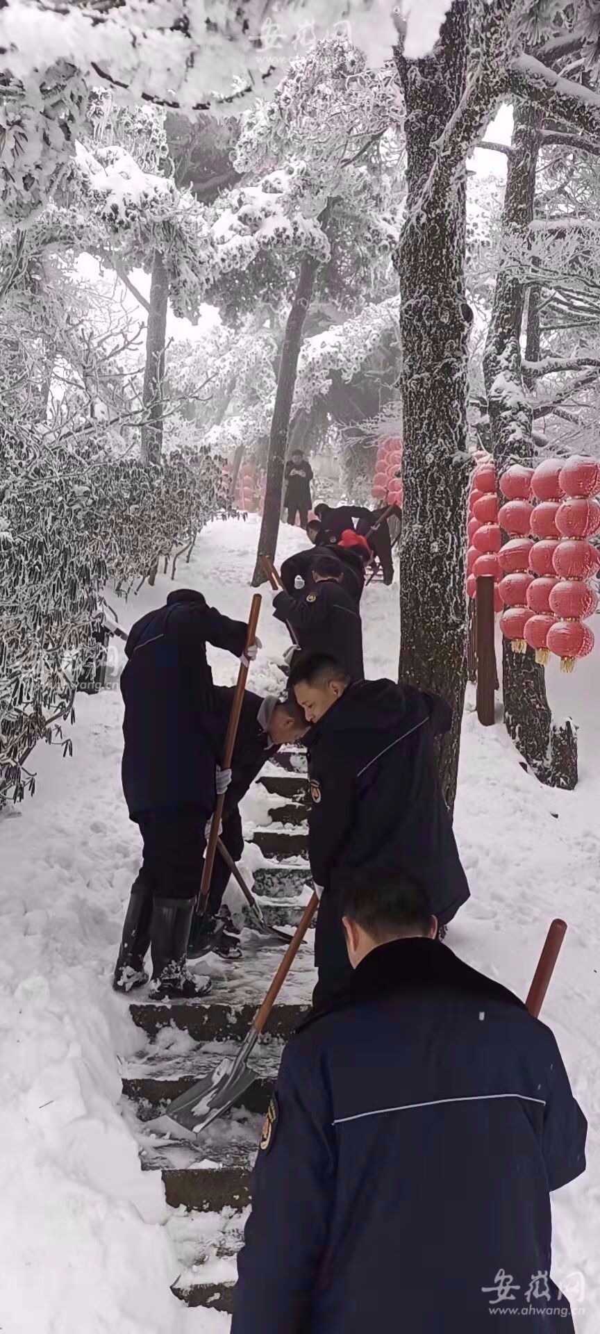 同時,派出鏟雪車,組織8支鏟雪突擊隊,明確分工,鏟雪突擊隊分布景區(qū)各個重要旅游線路節(jié)點,齊心協(xié)力,鏟雪除冰,清除彩虹公路兩旁積雪壓彎的枝條,清掃路面積雪。經過連日辛苦奮戰(zhàn),于2月8日13時全面貫通天柱山神秘谷_總關游線。