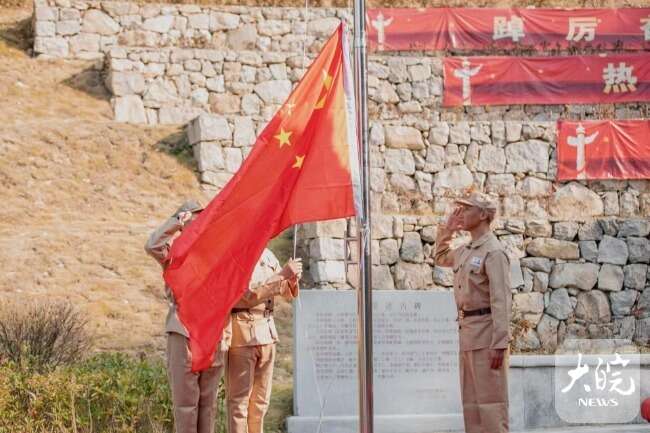 大皖新聞?dòng)?10月1日上午,抗美援朝老兵及其子女、港澳臺(tái)同胞代表以及天柱山游客、志愿者在天柱山愛園舉行。伴隨著莊嚴(yán)雄壯的國歌,鮮艷的五星紅旗緩緩升起,在湛藍(lán)的天空上高高飄揚(yáng),全體人員面向國旗莊嚴(yán)敬禮。他們凝視著鮮紅的國旗,表達(dá)最崇高的敬意,在“祖國母親 我想對您說”大型留言板上向祖國母親深情告白。