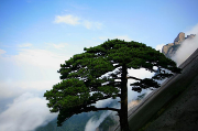 特色: 天柱山的千年古松不下萬株,作為群松之首的天柱松王,屹立于絕壁之上,扎根于石縫之中,下臨萬仞,上逼藍(lán)天,剛直挺立,有不可一世之慨。姊妹松、虬龍松、峭壁掛松等等,千姿百態(tài),婀娜多姿。從天池峰下來,崖壁上杵著天柱松,“松生處,遠(yuǎn)離崖際,無一雜草灌木,人莫能及,時被云海所沒?!背隽隋羞b宮你會發(fā)現(xiàn),四面石壁圍合,有“進(jìn)退維谷”之感,從下方能看到右邊峭壁上一株松樹斜伸...
