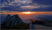 特色: 朗朗乾坤,綺霞紛祥;山清水秀,艷陽(yáng)高照。當(dāng)清晨的第一抹陽(yáng)光穿透薄薄的云霧,刺射晨初的水露散射在萬(wàn)丈高空,山下仰望,那是山與光的相互依托,一映一景,盡態(tài)極妍,極顯天柱峰光。晨陽(yáng)漸升,松云環(huán)腰,時(shí)輕時(shí)濃,滿山蒼翠若隱若現(xiàn),每至峰頂散陽(yáng)透入,則如金環(huán)系腰,風(fēng)云變幻,盡展天柱奇祥。及至正午,撥云見日,南山當(dāng)戶轉(zhuǎn)分明。屹立天柱之巔,城中景盡收眼底。更甚則是六月清和雨...